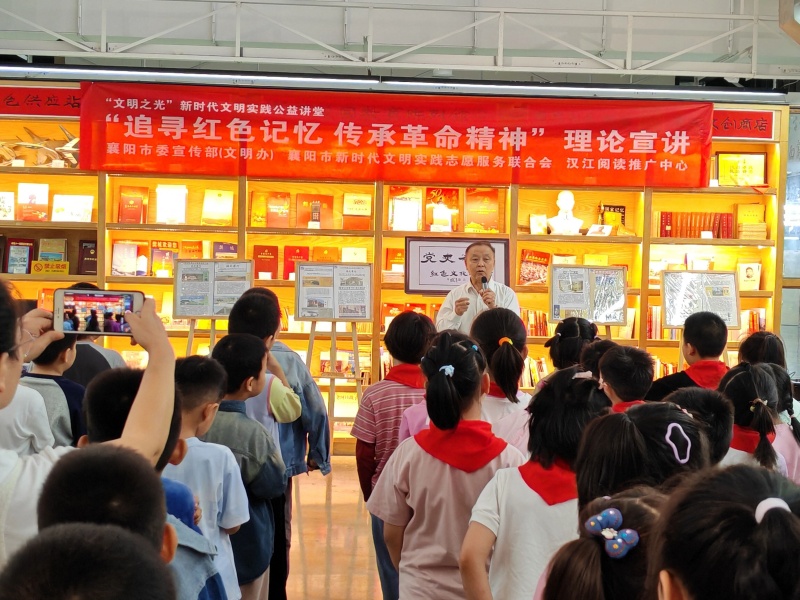 9月17日,由襄阳市文明办主办,襄阳市新时代文明实践志愿服务联合会与汉江阅读推广中心共同承办的“文明之光”新时代文明实践公益讲堂系列活动——“追寻红色记忆 传承革命精神”理论宣讲,在樊城区红色文化工作站成功举办。活动特邀“新时代文明实践宣讲员”、党史专家梁发双,为来自松鹤路小学的一百余名学生们带来了一堂生动而深刻的爱国主义教育课。